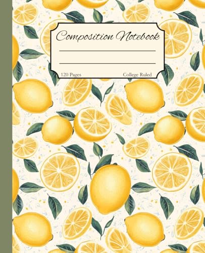 Composition Notebook: Spring Lemon Pattern - Beautiful Aesthetic Journal for School, Office, Journaling & Note-Taking | College Ruled, Wide Lined, 7.5" × 9.25", 120 Pages