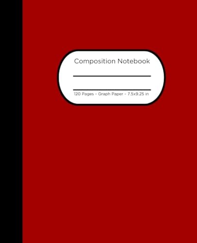 Composition Notebook: Graph Paper, 7.5 x in x 9.25 in, 120 Pages, Red