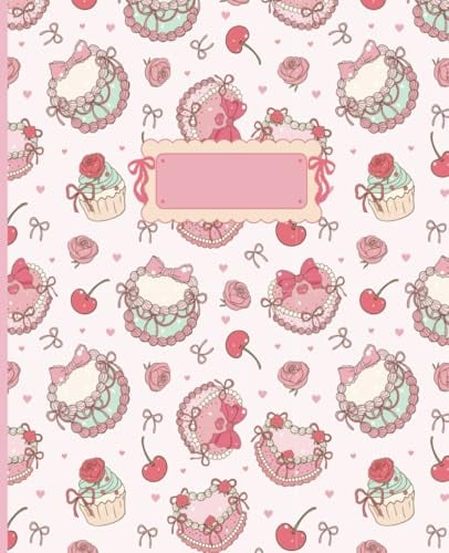 Pink Coquette Composition Notebook: Cute Cake, Cherry, Bows and Flowers Aesthetic Journal, 7.5 x 9.25, 120 wide ruled pages, for Kids, Teens, Students and Adults
