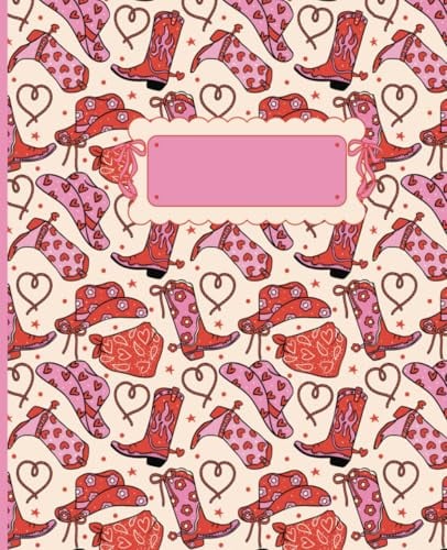 Cowgirl Coquette Composition Notebook: Cute Girly Boots, Bandanas, Hearts and Hats Journal, 7.5 x 9.25, 120 Wide Ruled Pages, Perfect for Kids, Teens and Adults