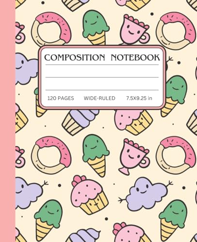 Kawaii Sweets Composition Notebook: Wide Ruled Notebook | 7.5" x 9.25", 120 Pages, Cute Dessert Aesthetic, Perfect for School, Work, and Journaling