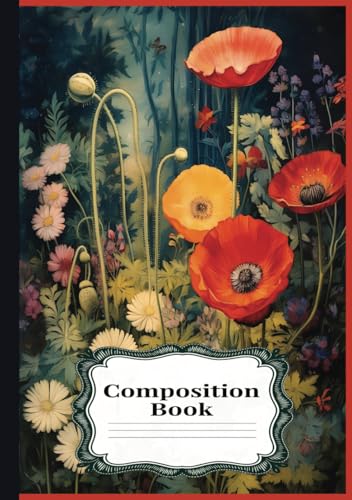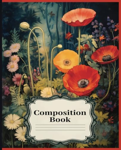 Composition Notebook Vintage Poppy Flowers College Ruled 7.5 x 9.25 120 Sheets: Classic Floral Nature Art Journal for Everyday Notes and Ideas Workbook