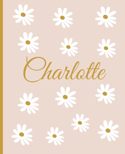 Charlotte Personalized Notebook With Daisy Flowers: Wide Ruled Lined Composition Notebook 7.5”x 9.25”, 120 Pages
