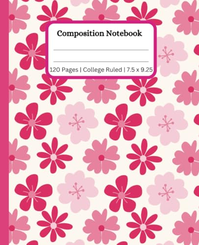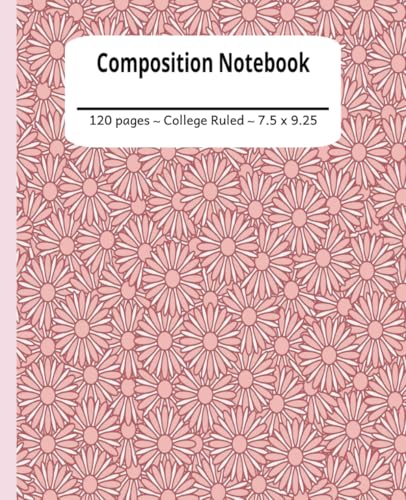 Composition Notebook: Pretty pink flower pattern | for girls teens adults | College Ruled, 7.5 x 9.25, 120 Pages