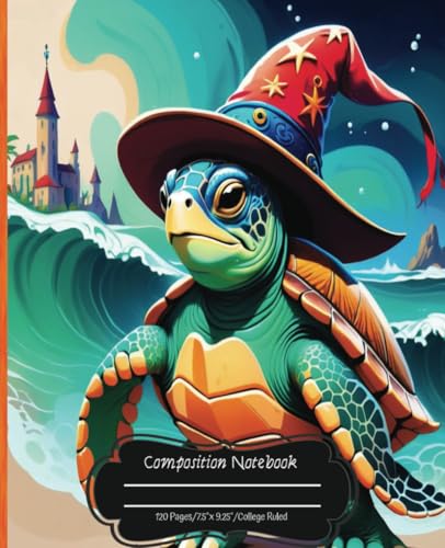 Composition Notebook: Colorful Sea Turtles Wear Hat In Picasso Style on Sea and Castle Background - 7.5" X 9.25" 120 Pages College Ruled