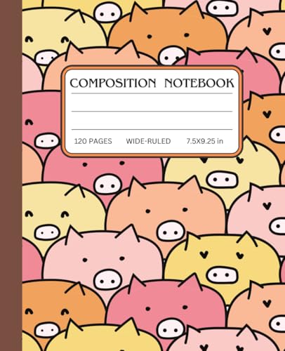 Cute Pig Composition Notebook: Wide Ruled Notebook | 7.5" x 9.25", 120 Pages, Adorable Kawaii Aesthetic, Great Gift for Kids, School and Office