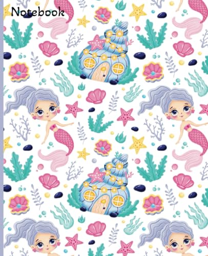 Mermaid Notebook | Wide Rule Notebook | 7.5 x 9.25, 120 pages | For kids, teens and adults