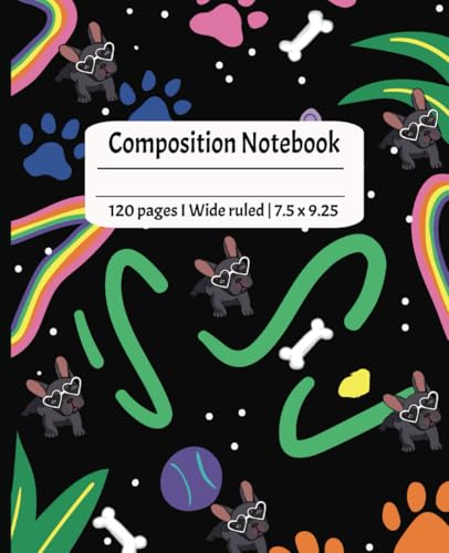 Composition Notebook: French Bulldog with heart-shaped sunglasses | Wide Ruled Notebook | Composition Notebook Wide Ruled French Bull Dogs, 7.5 X 9.25, 120 Pages notebook, For kids, teens, & adults