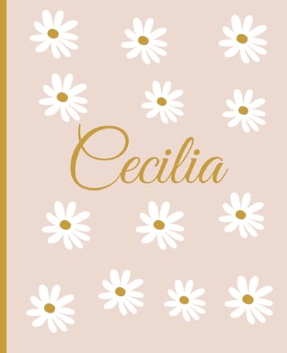Cecilia Personalized Notebook With Daisy Flowers: Wide Ruled Lined Composition Notebook 7.5”x 9.25”, 120 Pages