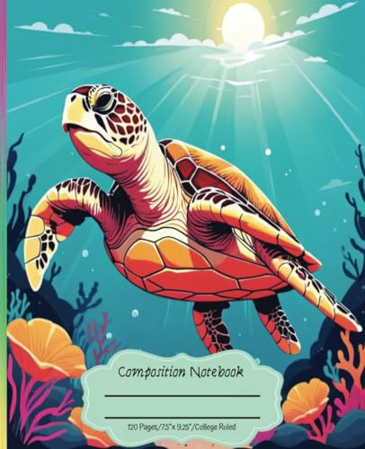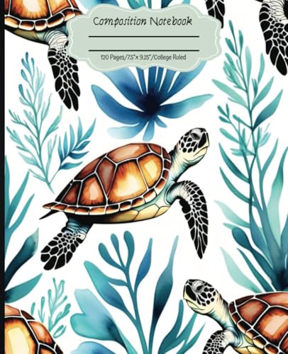 Composition Notebook: Realistic Sea Turtles Under The Sea Background - 7.5" X 9.25" 120 Pages College Ruled