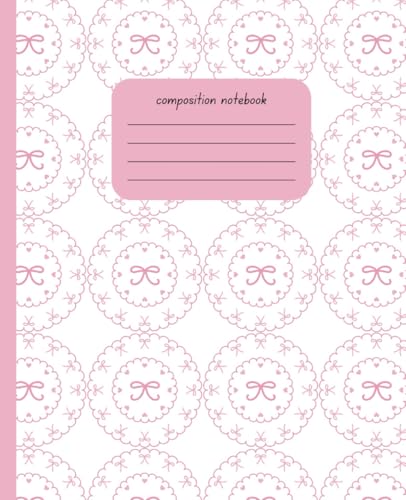 Composition Notebook: Delicate Pink Bows and Hearts, Coquette Aesthetic, for girls, teens and women, perfect for school or work, 7.5 x 9.25 in.,120 pages, college ruled paper, matte cover