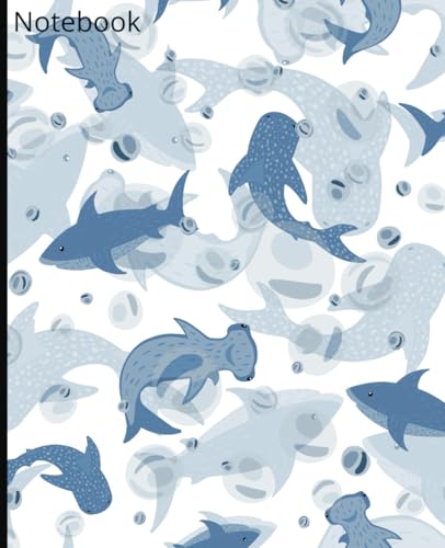Shark Notebook | Wide Rule Notebook | 7.5 x 9.25, 120 pages | For kids, teens and adults