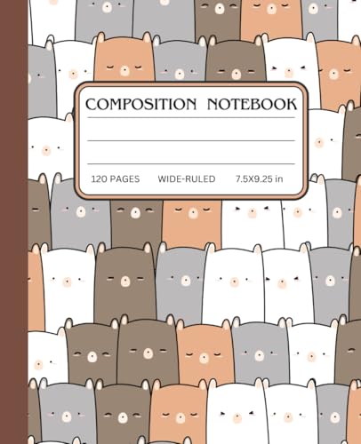 Kawaii Bear Composition Notebook: Wide Ruled Notebook | 7.5" x 9.25", 120 Pages, A Cozy and Cute Notebook for Writing, Journaling, and Note-Taking
