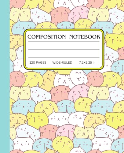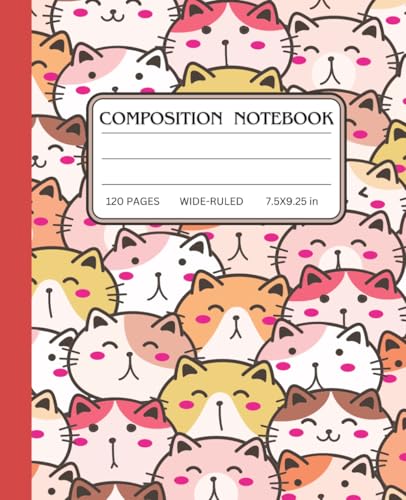 Cute Cat Composition Notebook: Wide Ruled Notebook | 7.5" x 9.25", 120 Pages, Adorable Kawaii Aesthetic, Great Gift for Cat Lovers, Students, and Office Use
