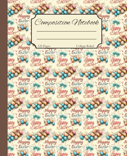 Composition Notebook: Vintage Happy Easter Colorful Eggs, Gifts Pattern - Beautiful Aesthetic Journal for School, Office, Journaling & Note-Taking | College Ruled, Wide Lined, 7.5" × 9.25", 120 Pages