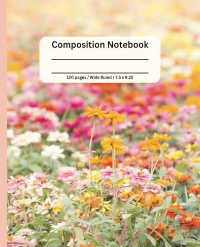 Composition Notebook: Flower | Wildflowers | Wide Ruled | 7.5 x 9.25, 120 Pages | Cute Journal Ideal For School, Collage And Work