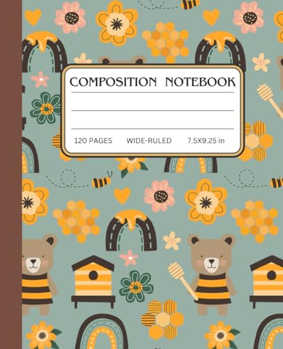 Kawaii Honey Bear Composition Notebook: Wide Ruled Notebook | 7.5" x 9.25", 120 Pages, Cute Bumblebee Bear & Honeycomb Aesthetic, Perfect for School, Work, and Journaling