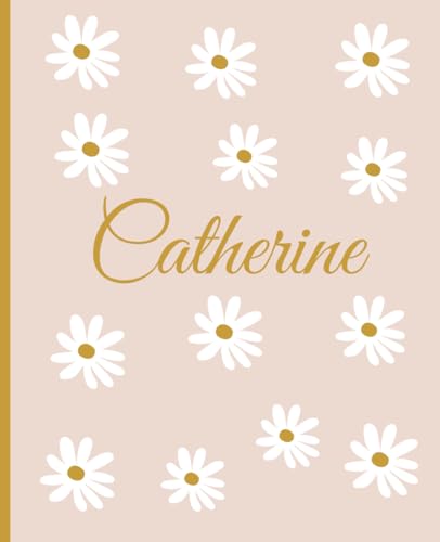 Catherine Personalized Notebook With Daisy Flowers: Wide Ruled Lined Composition Notebook 7.5”x 9.25”, 120 Pages