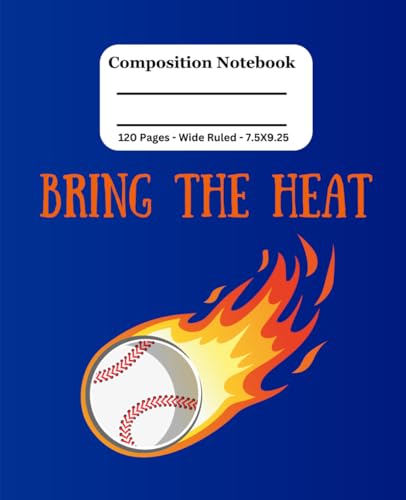 Baseball Notebook: Bring The Heat: Wide Ruled Composition Notebook - 7.5 X 9.25 - 120 Pages, For Kids, Teens, Adults