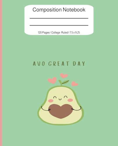 Composition Notebook: Avo Great Day: College Ruled | Cute Avocado with Heart | 7.5 x 9.25, 120 Pages | Sweet Valentine's Day Gift | For notes, journaling, writing