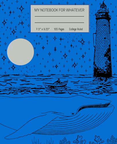 My Notebook For Whatever - Whale Watching at Moonlight - 7.5 x 9.25 with 120 College Ruled Pages - Helpful for School, Office & Home