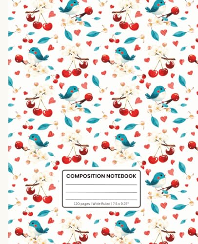 Watercolor Birds & Cherry Blossoms School Composition Notebook – Wide Ruled, 7.5" x 9.25", 120 Pages, Soft Matte Cover: Floral & Nature-Inspired – Ideal for School, Journaling, and Daily Notes