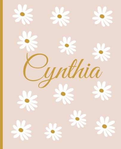Cynthia Personalized Notebook With Daisy Flowers: Wide Ruled Lined Composition Notebook 7.5”x 9.25”, 120 Pages