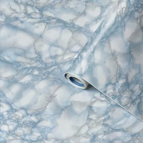 Venilia Självhäftande film | Marmor blå stenutseende blå | 45 cm x 2 m, tjocklek 95μ | självhäftande möbelfolie, dekorativ film, tapet, köksfolie | PVC utan ftalater | Tillverkad i EU