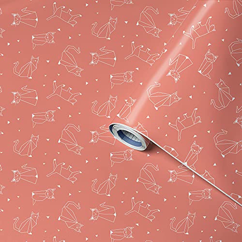 Venilia Självhäftande film för barns sovrum kattdesign 45 cm x 2 m 95 µm (tjocklek: 0,095 mm) PVC-ftalat – orange 45 cm x 2 m