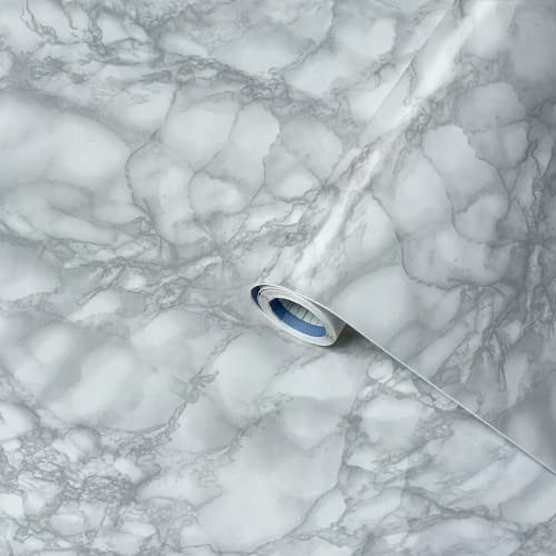 Venilia Självhäftande film | Marmor vit stenutseende vit | 45 cm x 3 m, tjocklek 95μ | självhäftande möbelfilm, dekorativ film, tapet, köksfolie | PVC utan ftalater | Tillverkad i EU