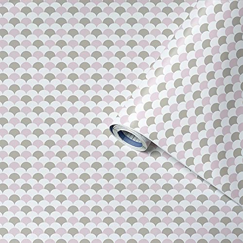 Venilia Självhäftande film | prickar retro rosa vit grå taupe | 45 cm x 2 m, tjocklek 95μ | självhäftande möbelfolie, dekorativ film, tapet, köksfolie | PVC utan ftalater | Tillverkad i EU