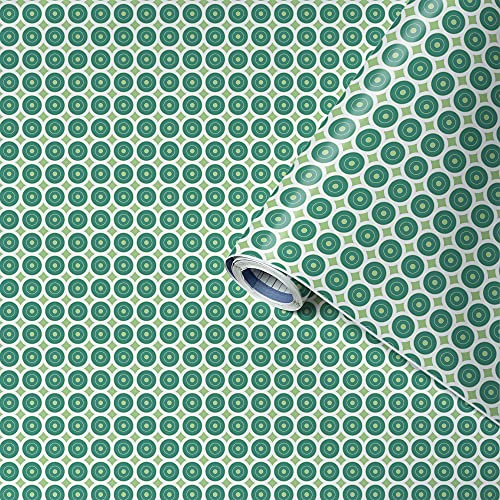 Venilia Självhäftande film | runda cirklar grönt retromönster grön | 45 cm x 2 m, tjocklek 95 μ | självhäftande möbelfolie, dekorativ film, tapet, köksfolie | PVC utan ftalater | Tillverkad i EU
