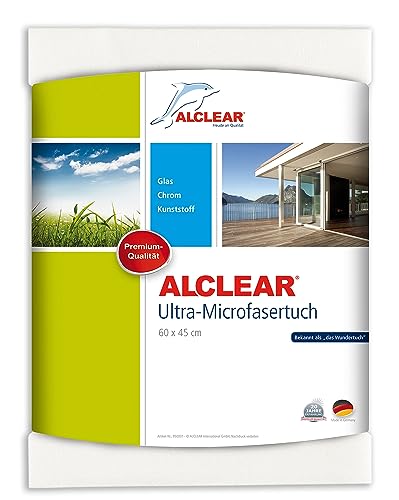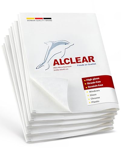 ALCLEAR 950002 mikrofiberduk fönsterduk – perfekt för fönster, mikrofiberduk för rengöring av bil, hushåll och fönster utan torkduk eller fönsterputs – 60 x 45 cm, vit