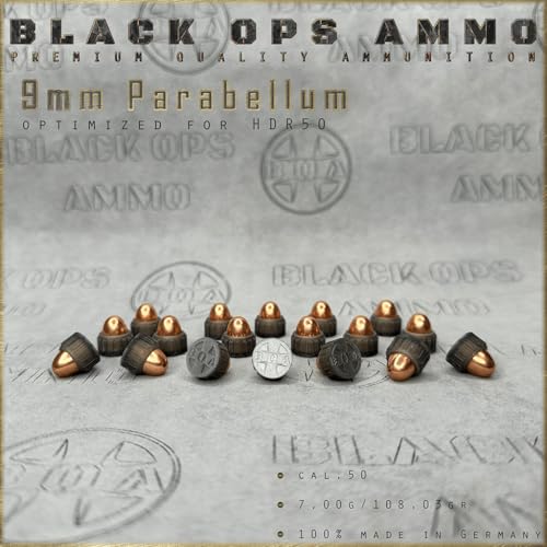 9 mm parabellum för TR50/HDR50 ammunition Cal.50 av Black OPS Ammo för riktad skjutning och taktiskt hemförsvar TR 50 HDR 50