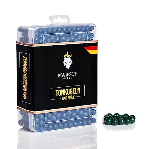 MAJESTY FOREST® slangbella ammunition i förvaringslåda - 500/1200 stycken - 9 mm biologiskt nedbrytbara lerkulor