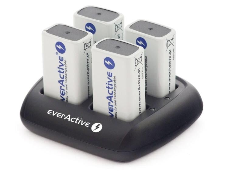 EBL 9V batteriladdare set – laddare perfekt för 9volt Li-ion Ni-MH batterier inkl. 9 V Li-ion batterier 600mAh 4 stycken, EBL M7015 med batteripaket