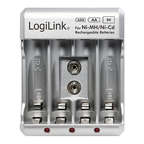 LogiLink PA0168 batteriladdare för "AA/AAA/9V Ni-MH/Ni-Cd batterier" silver
