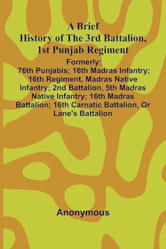 A Brief History Of The 3Rd Battalion, 1St Punjab Regiment: Formerly: 76Th Punjabis; 16Th Madras Infantry; 16Th Regiment, Madras Native Infantry; 2Nd ... 16Th Carnatic Battalion, Or Lane'S Battalio