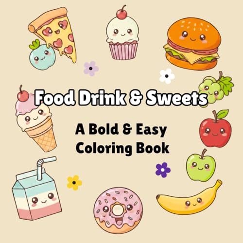 Food, Drink & Sweets – A Kawaii Coloring Book for Kids, Teens & Adults: Stress Relief Coloring Book with Bold and Easy Pages – Simple, Big Kawaii Designs for Kids, Teens & Adults