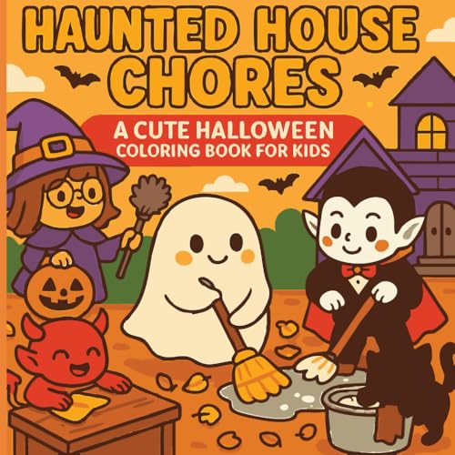 Haunted House Chores: A Cute and Easy Halloween Coloring Book for Kids: A Big, Bold & Easy Halloween Coloring Book with Cute Ghosts, Monsters & Magical Chores