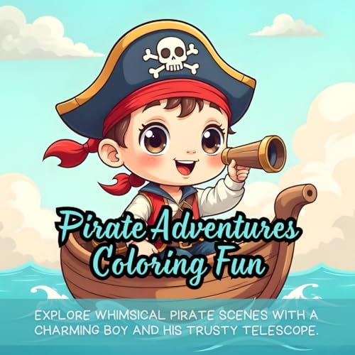 Pirate Adventures Coloring Fun: Explore whimsical pirate scenes with a charming boy and his trusty telescope.