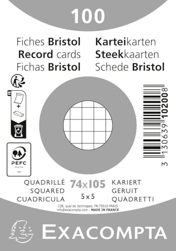 Oxford Revision 2.0 set med 50 Bristol A5-kort (14,8 x 21 cm) små rutor på båda sidor - vit ram