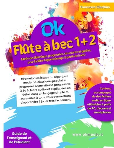 OK FLÛTE À BEC 1+2 volume unique: Méthode didactique, progressive, structurée et guidée, pour faciliter l'apprentissage (à partir de 5 ans). 163 ... proposées à une vitesse progressive