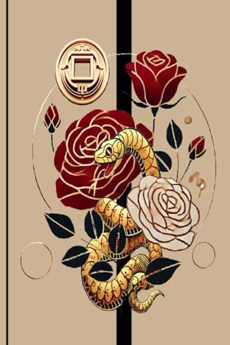 NOTEBOOK, lined pages , with a snake and roses elegant cover design, 6"×9": A good gift idea for the chinese new year of the snake