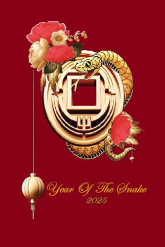 Notebook for the year of the snake 2025, lined 120 pages, cover with red colour and a graphic design of a gold coin and roses: good gift idea for your beloved ones