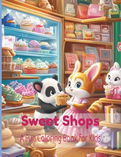 Sweet Shops: A Fun Coloring Book for Kids: Coloring Fun with Sweet Animals Shopping in Bakeries, Ice Cream Shops, and More