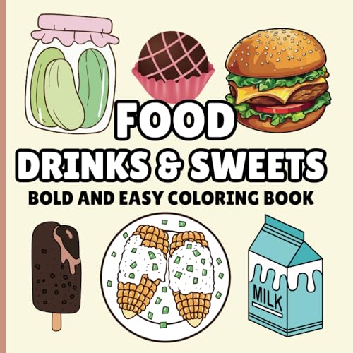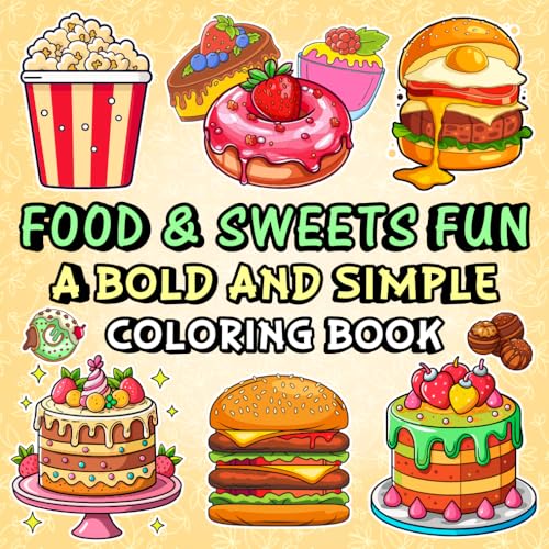 Food & Sweets Fun A Bold And Simple Coloring Book: Simple Cute and Relaxing Designs Featuring a Variety of Foods including Cupcakes Candy Ice Cream Desserts Pastries and More