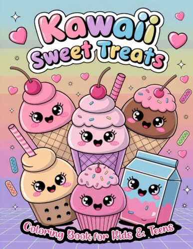 Kawaii Sweet Treats Coloring Book for Kids and Teens: A Delightful World Of Cupcakes, Jelly Treats, Ice Cream Sundaes, Chocolate Truffles, Pudding, And More Fun Desserts For Girls and Boys
