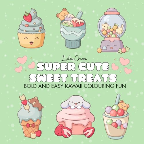 Super Cute Sweet Treats: Bold & Easy Kawaii Colouring Book for Kids, Teens & Adults: Delicious Desserts, Cupcakes, Donuts, Ice Cream & More – A Whimsical Coloring Adventure for All Ages