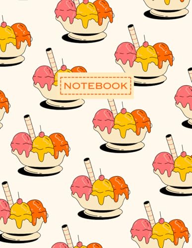 A pastel orange and gray wallpaper notebook with a cute ice cream glass on it.: For students and schools Suitable for women and men Office staff Teenagers, women, men, 8.5x11, 100 pages.